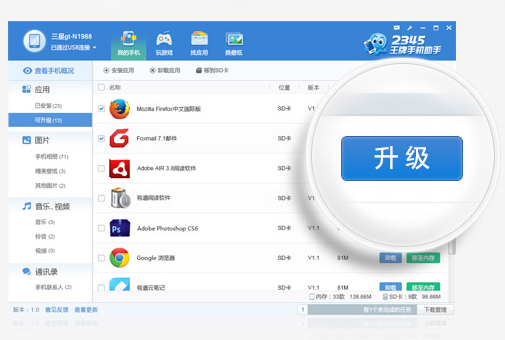 無論是軟件升級、卸載或轉(zhuǎn)移進(jìn)手機(jī)里,只要連接成功,分分鐘就可以幫你