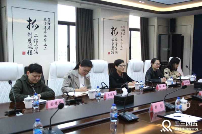 二三四五集團(tuán)團(tuán)支部書記王思朝向一行領(lǐng)導(dǎo)匯報(bào)了二三四五團(tuán)支部建設(shè)工作。二三四五員工以29歲左右的青年為主,充滿活力。在二三四五集團(tuán)黨支部的引領(lǐng)和熏陶下,二三四五于今年9月份成立了團(tuán)支部。作為二三四五黨支部的新生力量,團(tuán)支部定將在黨支部的領(lǐng)導(dǎo)下開展工作,緊密圍繞黨支部的中心任務(wù)開展各項(xiàng)活動(dòng),積極發(fā)揮黨建帶團(tuán)建的“五帶”作用。