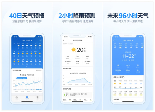 【全場景覆蓋】打開9.0版天氣王,可以看到首屏展示中,信息布局從上到下依次是實(shí)時(shí)、24小時(shí)、15日、40日:實(shí)況+短期+長期。清晰的信息結(jié)構(gòu)使用戶更容易獲取信息,也更便于進(jìn)行信息的橫向縱向?qū)Ρ?。覆蓋全部天氣需求場景: