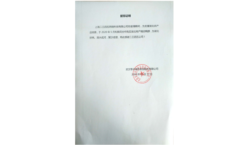 人間四月芳菲盡,湖北經(jīng)濟(jì)復(fù)蘇時(shí)。5月,上海二三四五網(wǎng)絡(luò)控股集團(tuán)股份有限公司(以下簡(jiǎn)稱“二三四五”,002195.SZ)和湖北當(dāng)?shù)睾献魃缂肮S取得聯(lián)系,采購(gòu)一批湖北特產(chǎn),并為湖北特色農(nóng)產(chǎn)品直播帶貨,為湖北經(jīng)濟(jì)復(fù)蘇貢獻(xiàn)一份力。