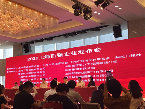 2020年8月18日,由上海市企業(yè)聯(lián)合會、上海市企業(yè)家協(xié)會、上海市經(jīng)濟(jì)團(tuán)體聯(lián)合會和解放日報社聯(lián)合主辦的2020上海百強(qiáng)企業(yè)發(fā)布會在上海舉行,2020上海企業(yè)100強(qiáng)、上海制造業(yè)企業(yè)100強(qiáng)、上海服務(wù)業(yè)企業(yè)100強(qiáng),2020上海民營企業(yè)100強(qiáng)、上海民營制造業(yè)企業(yè)100強(qiáng)、上海民營服務(wù)業(yè)企業(yè)100強(qiáng)和2020上海百強(qiáng)成長企業(yè)50強(qiáng)排行榜發(fā)布。