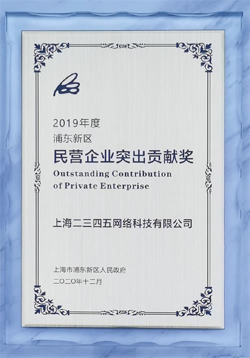 (二三四五榮獲2019年度浦東新區(qū)民營企業(yè)突出貢獻獎20強)